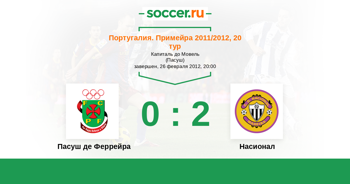 Португалия. Примейра 17.02.2013 Пасуш де Феррейра Логотип футбольный клуб Пасуш де Феррейра 1:1 Логотип футбольный клуб Насионал (Фуншал) Насионал