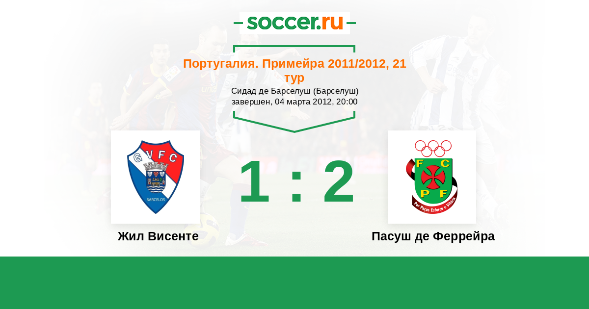 Португалия. Примейра 25.09.2011 Пасуш де Феррейра Логотип футбольный клуб Пасуш де Феррейра 1:2 Логотип футбольный клуб Жил Висенте (Барселуш) Жил Висенте
