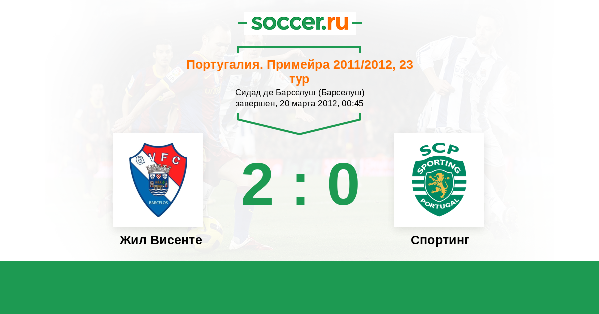 Португалия. Примейра 24.10.2011 Спортинг Логотип футбольный клуб Спортинг (Лиссабон) 6:1 Логотип футбольный клуб Жил Висенте (Барселуш) Жил Висенте
