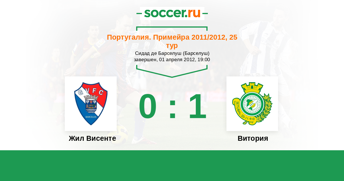 Португалия. Примейра 06.11.2011 Витория Логотип футбольный клуб Витория (Сетубал) 0:0 Логотип футбольный клуб Жил Висенте (Барселуш) Жил Висенте