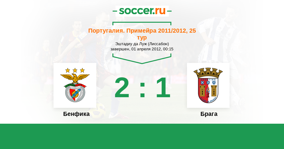 Португалия. Примейра 06.11.2011 Брага Логотип футбольный клуб Брага 1:1 Логотип футбольный клуб Бенфика (Лиссабон) Бенфика