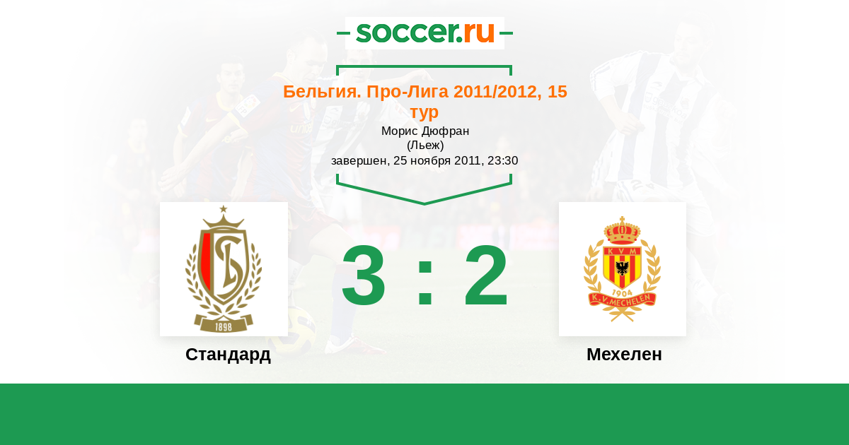 Бельгия. Про-Лига 21.03.2012 Мехелен Логотип футбольный клуб Мехелен 1:2 Логотип футбольный клуб Стандард (Льеж) Стандард