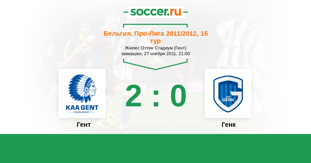 Бельгия. Про-Лига 03.11.2012 Гент Логотип футбольный клуб Гент 1:2 Логотип футбольный клуб Генк Генк