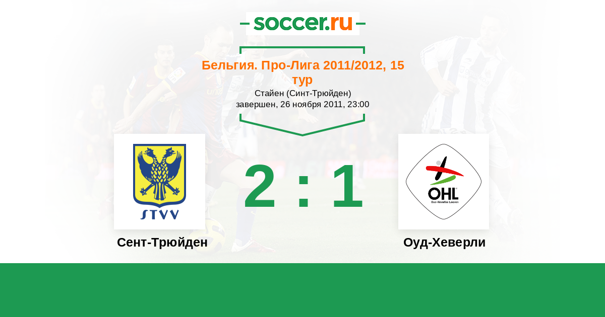 Бельгия. Про-Лига 21.03.2012 Оуд-Хеверли Логотип футбольный клуб Оуд-Хеверли (Левен) 3:1 Логотип футбольный клуб Сент-Трюйден (Синт-Трёйден) Сент-Трюйден