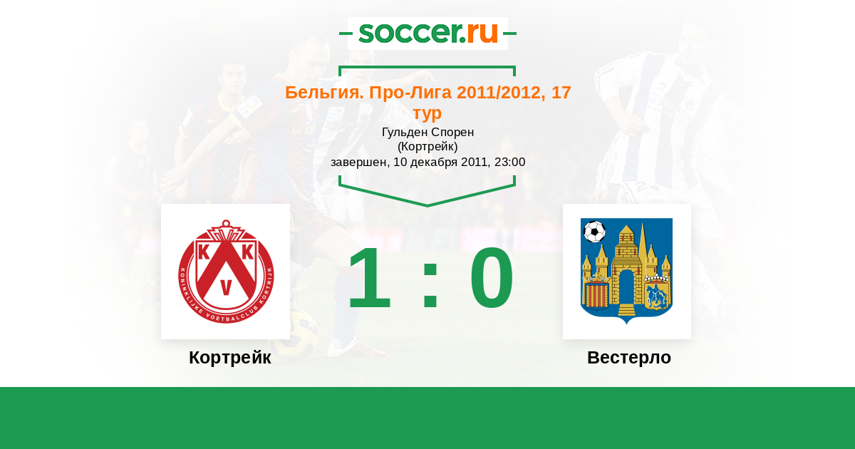 Бельгия. Про-Лига 19.12.2009 Кортрейк Логотип футбольный клуб Кортрейк 1:1 Логотип футбольный клуб Вестерло Вестерло