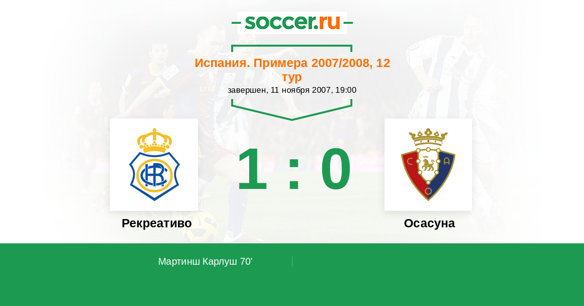 Протокол матча Рекреативо против Осасуна