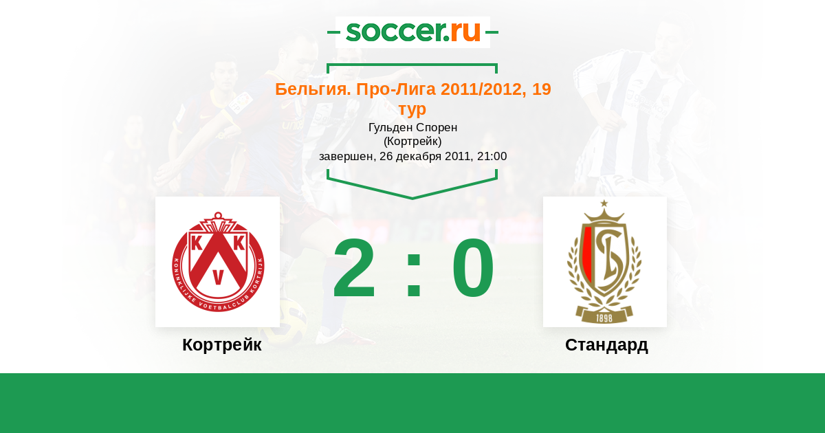 Бельгия. Про-Лига 30.09.2012 Кортрейк Логотип футбольный клуб Кортрейк 2:1 Логотип футбольный клуб Стандард (Льеж) Стандард