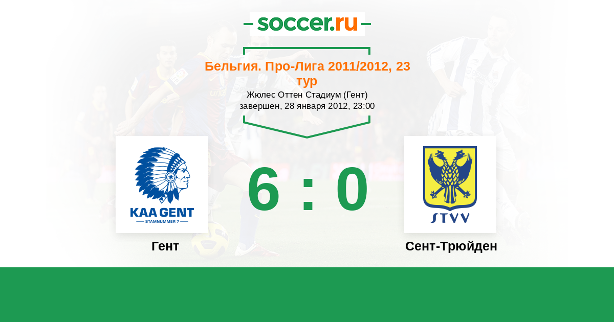 Бельгия. Про-Лига 30.01.2011 Сент-Трюйден Логотип футбольный клуб Сент-Трюйден (Синт-Трёйден) 1:1 Логотип футбольный клуб Гент Гент