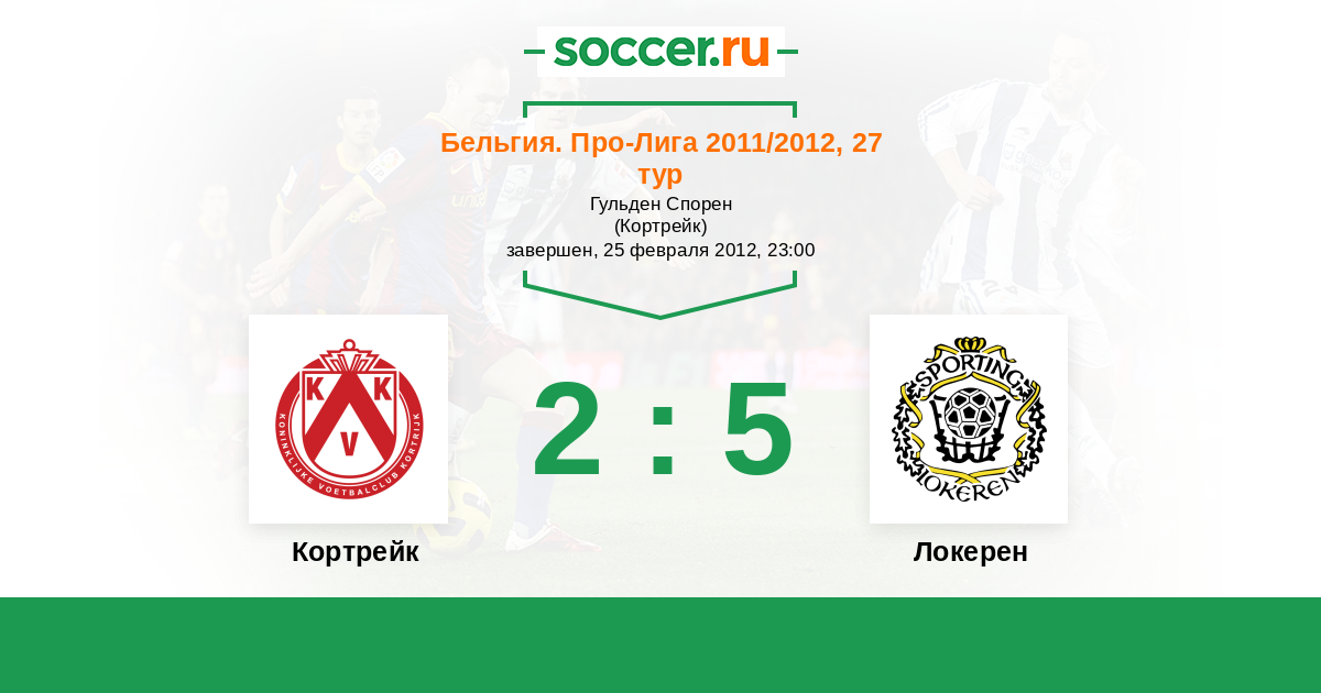 Бельгия. Кубок 24.03.2012 Кортрейк Логотип футбольный клуб Кортрейк 0:1 Логотип футбольный клуб Локерен Локерен