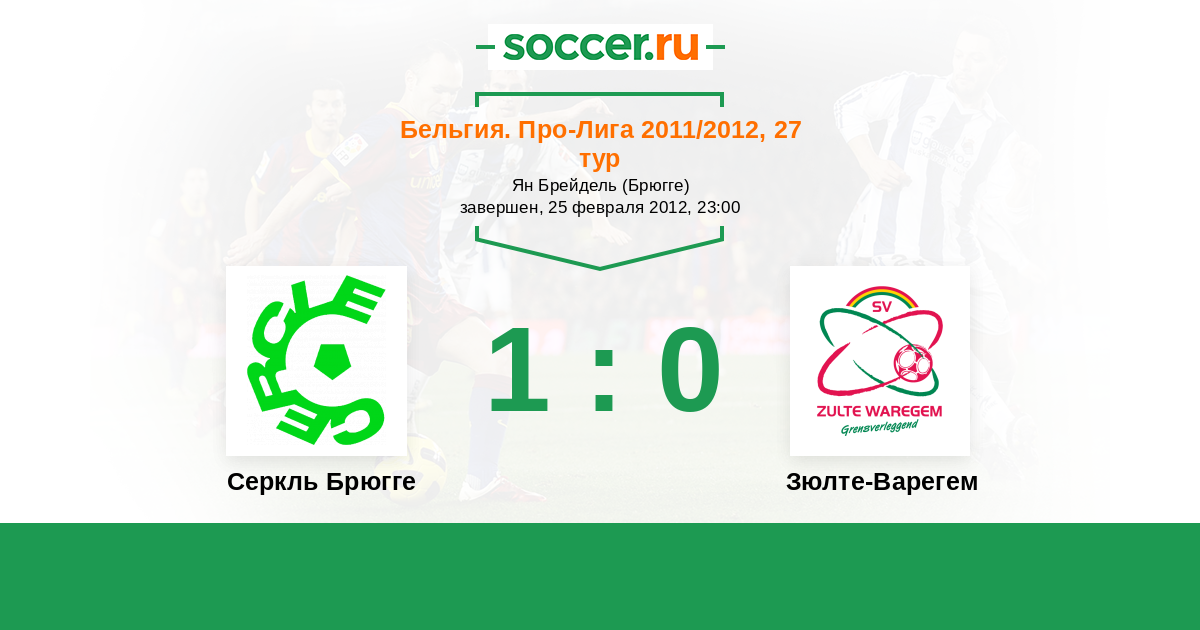 Бельгия. Про-Лига 29.10.2011 Зюлте-Варегем Логотип футбольный клуб Зюлте-Варегем 1:1 Логотип футбольный клуб Серкль Брюгге Серкль Брюгге