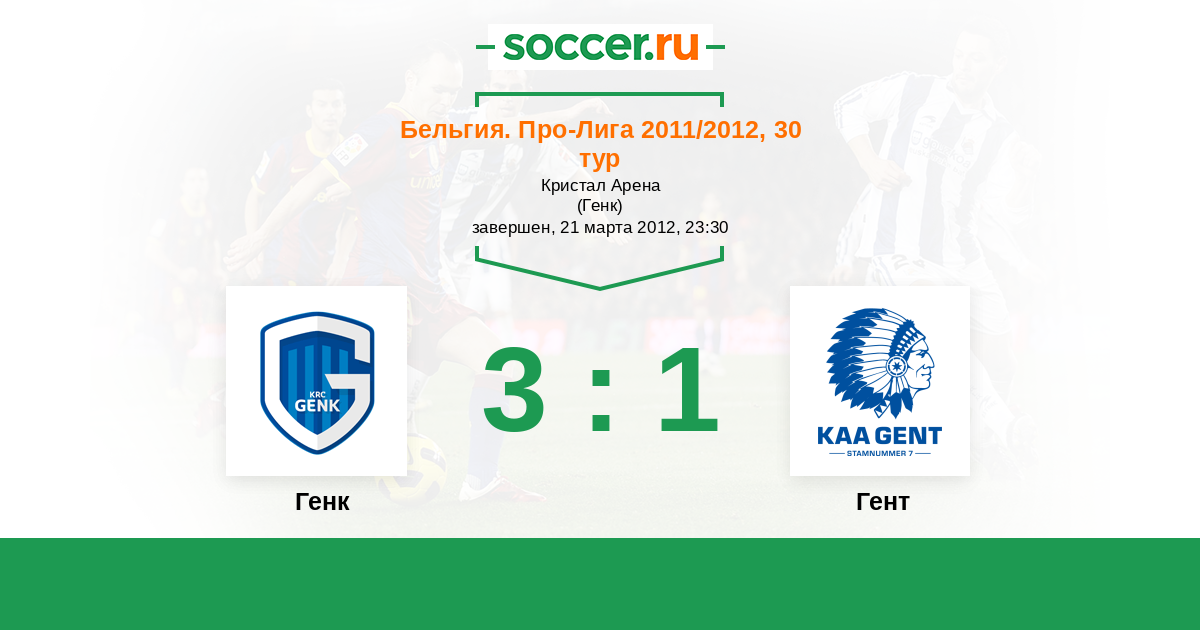 Бельгия. Про-Лига 07.04.2012 Генк Логотип футбольный клуб Генк 2:0 Логотип футбольный клуб Гент Гент