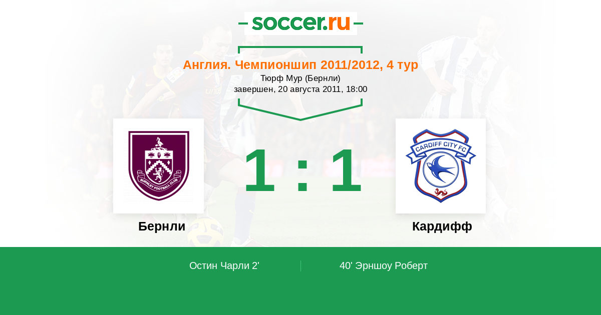 Протокол матча Бернли против Кардифф