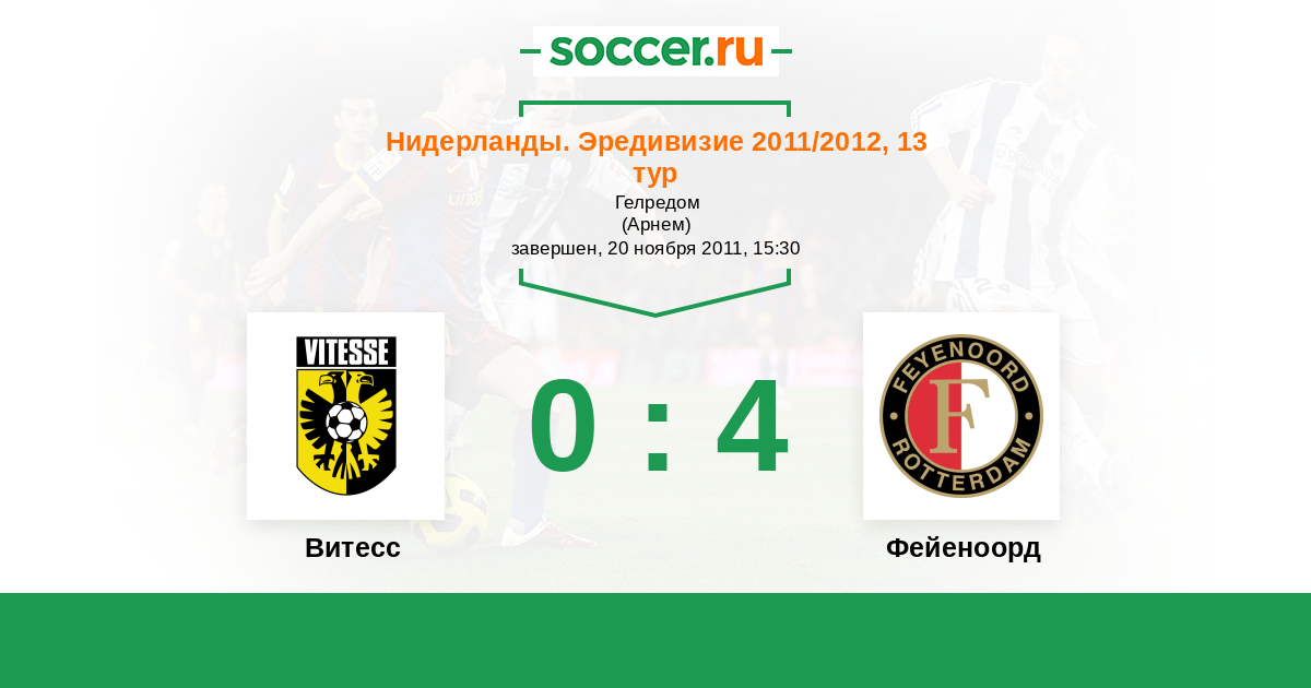 Нидерланды. Эредивизи 12.02.2012 Фейеноорд Логотип футбольный клуб Фейеноорд (Роттердам) 3:1 Логотип футбольный клуб Витесс (Арнем) Витесс