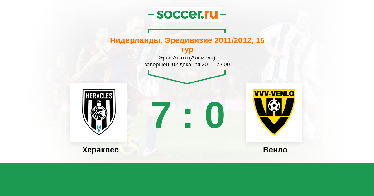 Нидерланды. Эредивизи 25.02.2012 Венло Логотип футбольный клуб Венло 3:1 Логотип футбольный клуб Хераклес (Алмело) Хераклес