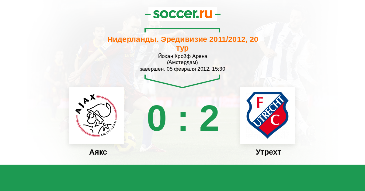 Нидерланды. Эредивизи 23.01.2011 Утрехт Логотип футбольный клуб Утрехт 3:0 Логотип футбольный клуб Аякс (Амстердам) Аякс