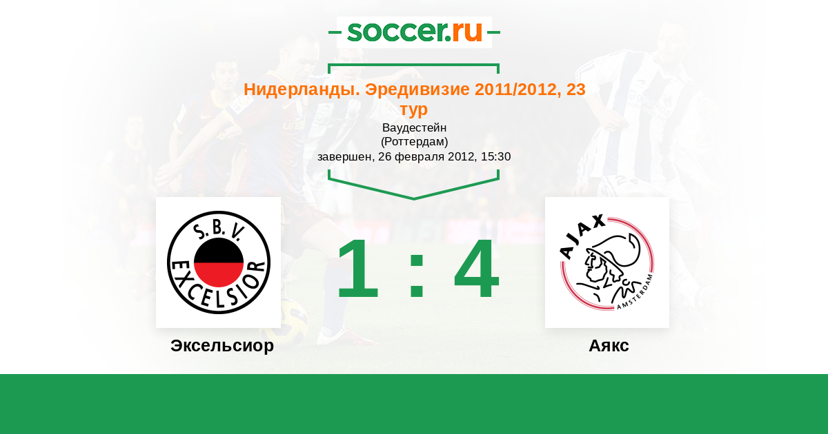 Нидерланды. Эредивизи 03.12.2011 Аякс Логотип футбольный клуб Аякс (Амстердам) 4:1 Логотип футбольный клуб Эксельсиор (Роттердам) Эксельсиор