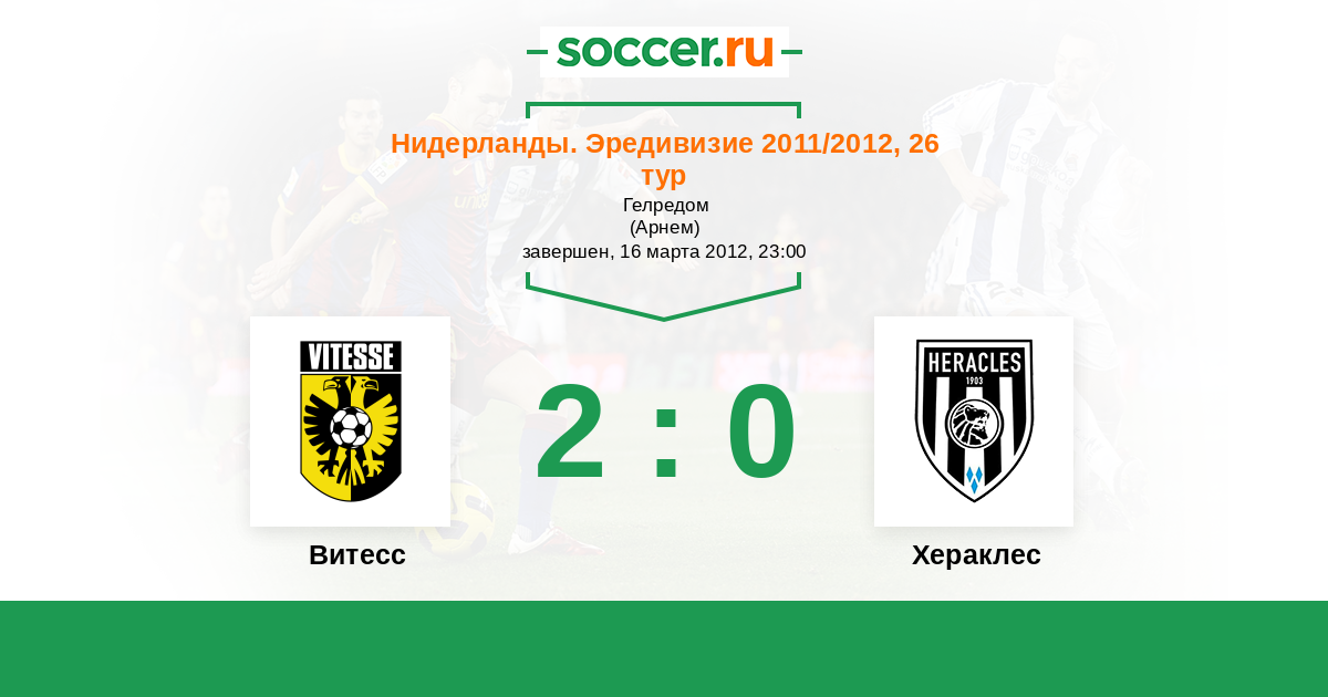 Нидерланды. Эредивизи 22.09.2012 Витесс Логотип футбольный клуб Витесс (Арнем) 1:1 Логотип футбольный клуб Хераклес (Алмело) Хераклес