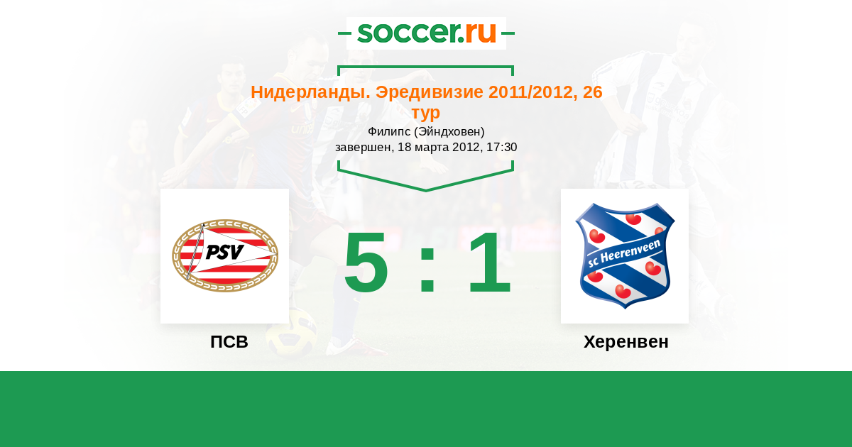 Нидерланды. Эредивизи 11.11.2012 ПСВ Логотип футбольный клуб ПСВ (Эйндховен) 5:1 Логотип футбольный клуб Херенвен Херенвен