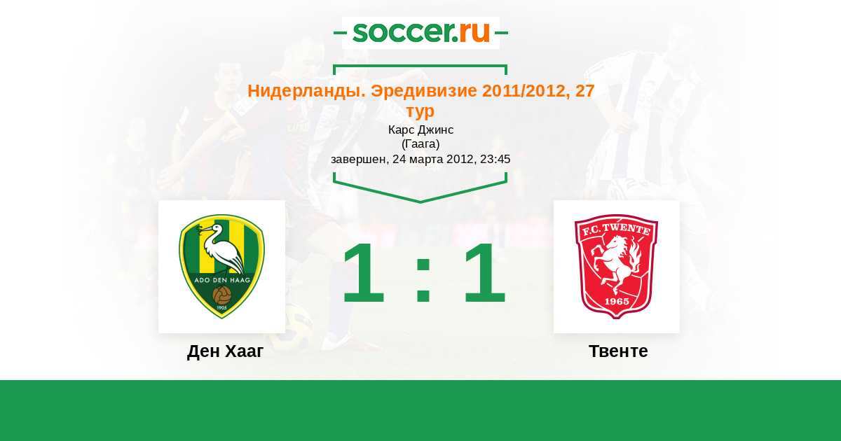 Нидерланды. Эредивизи 01.12.2012 Твенте Логотип футбольный клуб Твенте (Энсхеде) 2:0 Логотип футбольный клуб Ден Хааг (Гаага) Ден Хааг