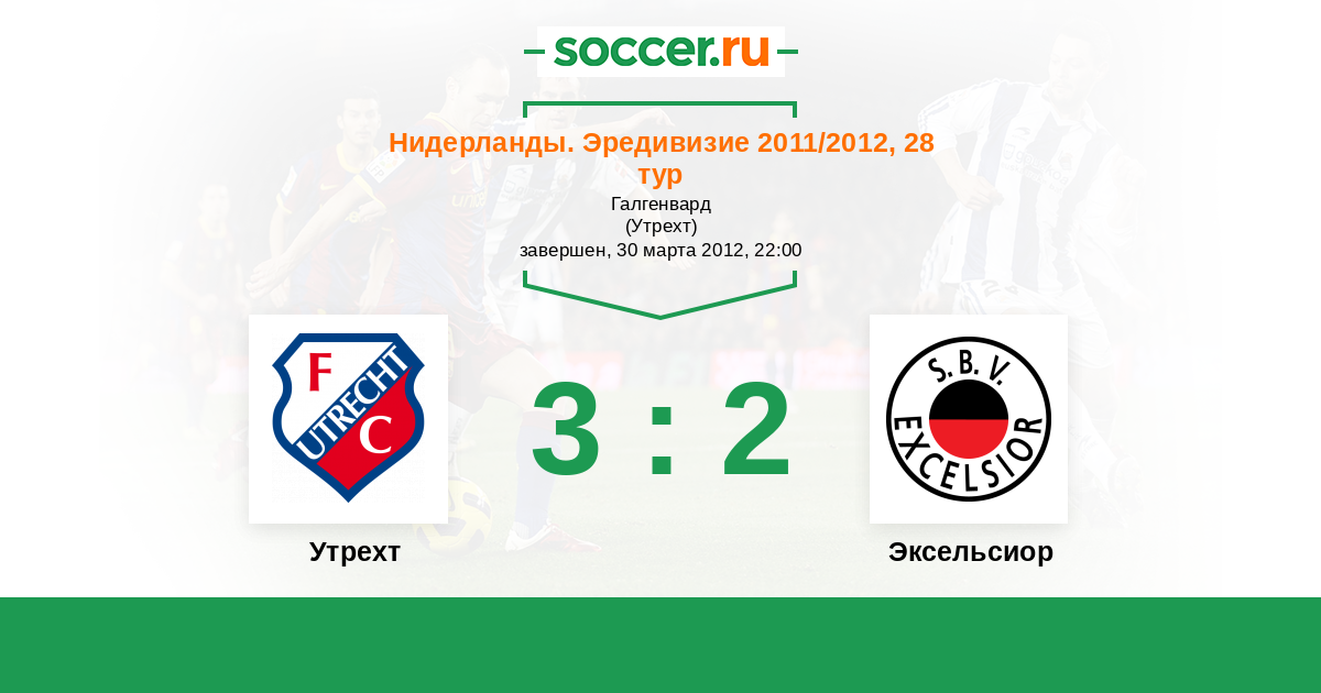 Нидерланды. Эредивизи 11.09.2011 Эксельсиор Логотип футбольный клуб Эксельсиор (Роттердам) 2:3 Логотип футбольный клуб Утрехт Утрехт