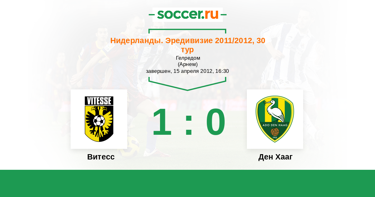 Нидерланды. Эредивизи 12.08.2012 Витесс Логотип футбольный клуб Витесс (Арнем) 2:2 Логотип футбольный клуб Ден Хааг (Гаага) Ден Хааг