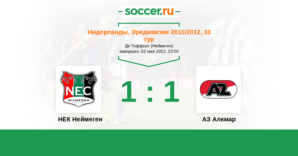Нидерланды. Эредивизи 07.04.2013 НЕК Неймеген Логотип футбольный клуб НЕК Неймеген 1:1 Логотип футбольный клуб АЗ Алкмар АЗ Алкмар