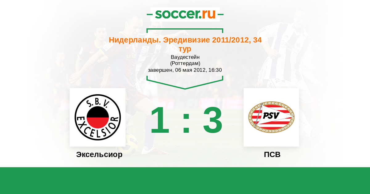 Нидерланды. Эредивизи 28.08.2011 ПСВ Логотип футбольный клуб ПСВ (Эйндховен) 6:1 Логотип футбольный клуб Эксельсиор (Роттердам) Эксельсиор
