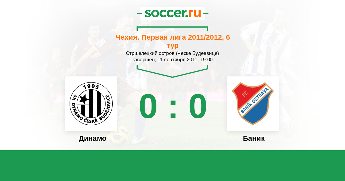 Чехия. Первая Лига 10.03.2012 Баник Логотип футбольный клуб Баник (Острава) 1:1 Логотип футбольный клуб Динамо (Ческе-Будеевице) Динамо