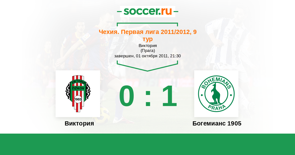 Чехия. Первая Лига 30.03.2012 Богемианс 1905 Логотип футбольный клуб Богемианс 1905 (Прага) 1:2 Логотип футбольный клуб Виктория (Жижков) Виктория