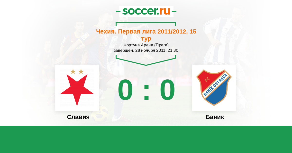 Чехия. Первая Лига 09.05.2012 Баник Логотип футбольный клуб Баник (Острава) 3:0 Логотип футбольный клуб Славия (Прага) Славия