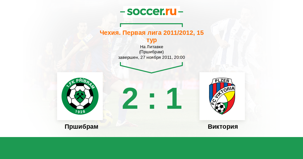 Чехия. Первая Лига 07.10.2012 Пршибрам Логотип футбольный клуб Пршибрам 1:0 Логотип футбольный клуб Виктория (Пльзень) Виктория