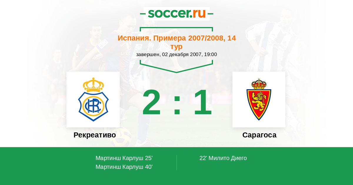 Протокол матча Рекреативо против Сарагоса
