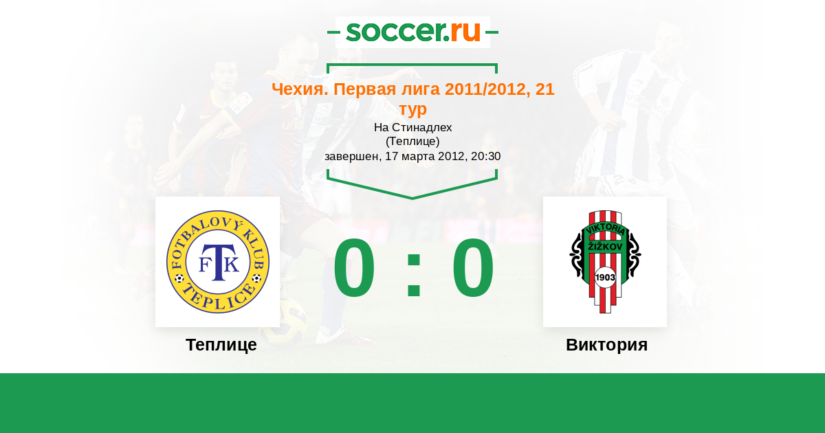 Чехия. Первая Лига 18.09.2011 Виктория Логотип футбольный клуб Виктория (Жижков) 0:1 Логотип футбольный клуб Теплице Теплице