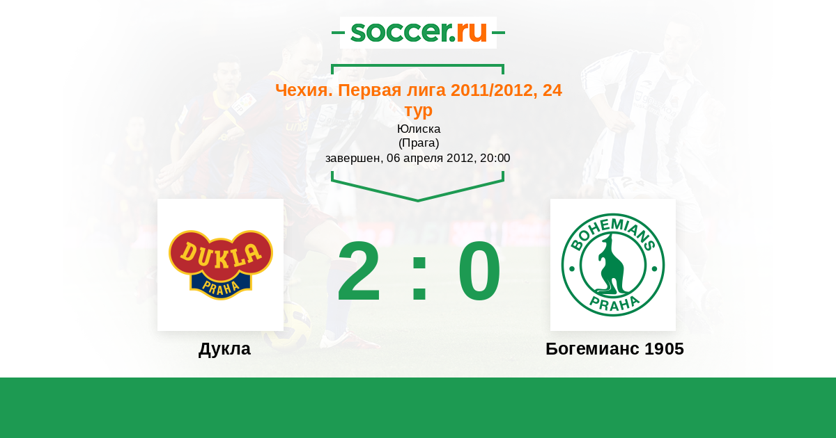Чехия. Первая Лига 16.10.2011 Богемианс 1905 Логотип футбольный клуб Богемианс 1905 (Прага) 0:0 Логотип футбольный клуб Дукла (Прага) Дукла