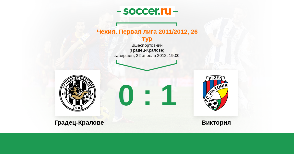 Чехия. Первая Лига 29.07.2012 Виктория Логотип футбольный клуб Виктория (Пльзень) 3:0 Логотип футбольный клуб Градец-Кралове Градец-Кралове