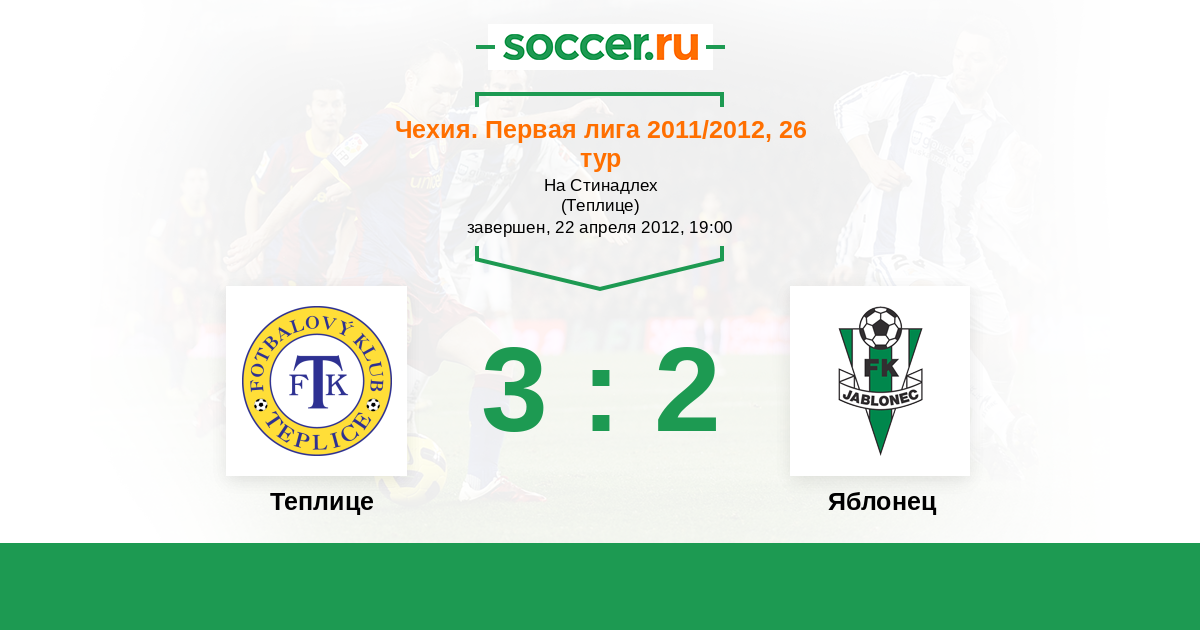 Чехия. Первая Лига 31.08.2012 Теплице Логотип футбольный клуб Теплице 0:4 Логотип футбольный клуб Яблонец (Яблонец-над-Нисоу) Яблонец