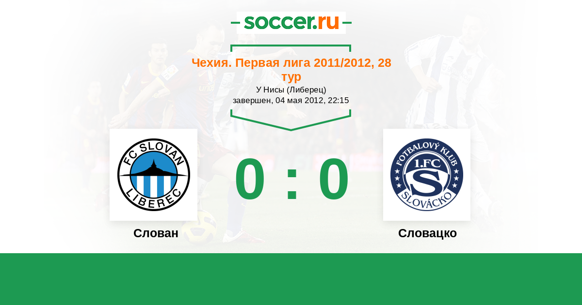 Чехия. Первая Лига 14.05.2011 Слован Логотип футбольный клуб Слован (Либерец) 1:0 Логотип футбольный клуб Словацко (Угерске-Градиште) Словацко