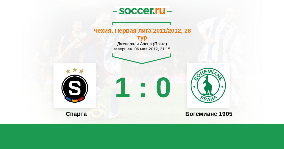 Чехия. Первая Лига 13.05.2011 Спарта Логотип футбольный клуб Спарта (Прага) 2:0 Логотип футбольный клуб Богемианс 1905 (Прага) Богемианс 1905