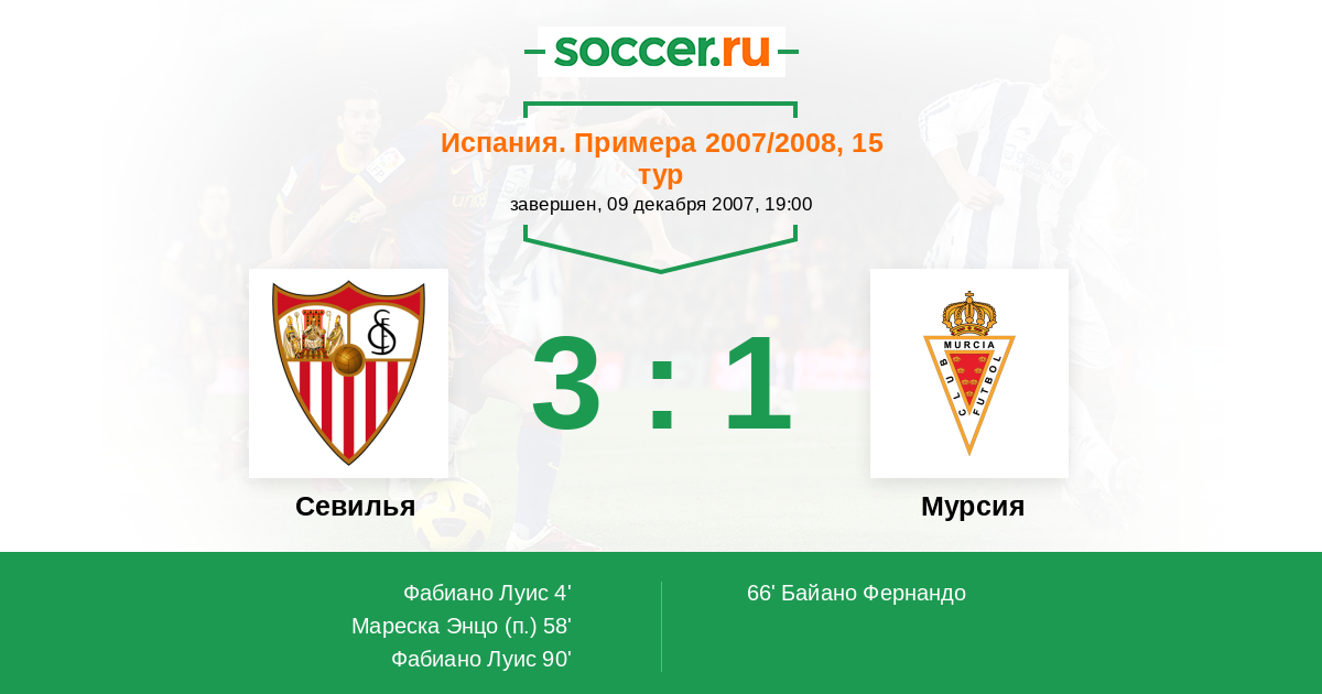 Протокол матча Севилья против Мурсия