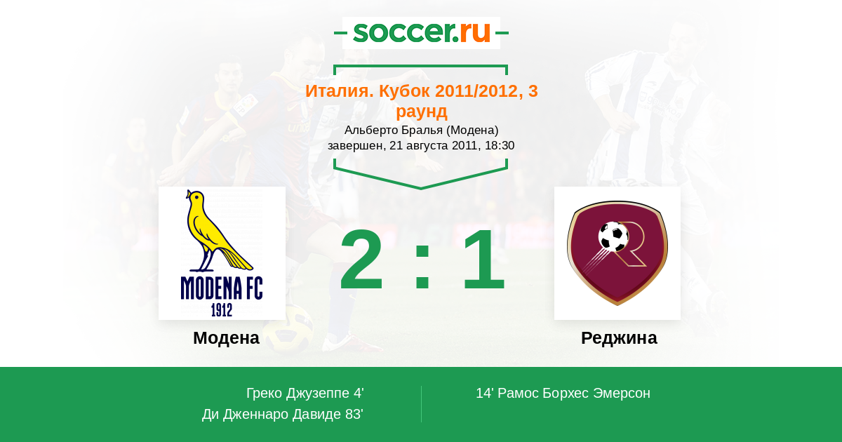 Протокол матча Модена против Реджина