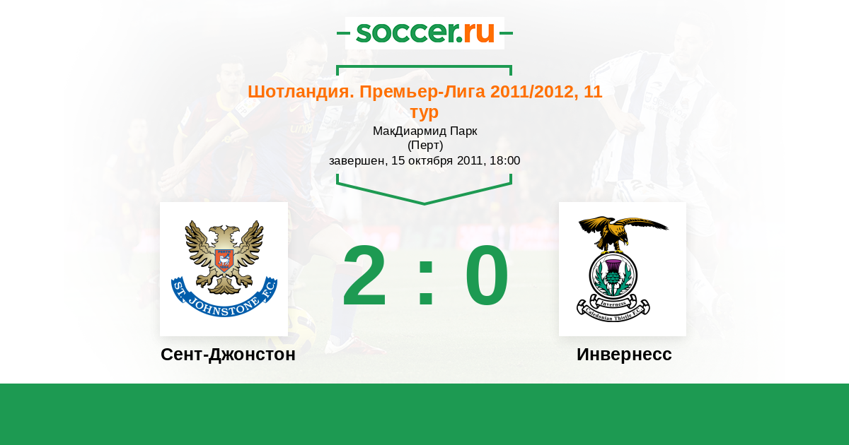 Шотландия. Премьер-Лига 25.04.2011 Сент-Джонстон Логотип футбольный клуб Сент-Джонстон (Перт) 0:3 Логотип футбольный клуб Инвернесс Инвернесс