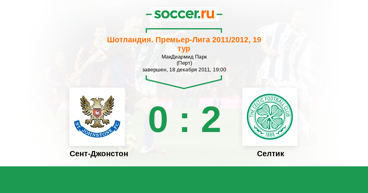 Шотландия. Премьер-Лига 01.04.2012 Селтик Логотип футбольный клуб Селтик (Глазго) 2:0 Логотип футбольный клуб Сент-Джонстон (Перт) Сент-Джонстон