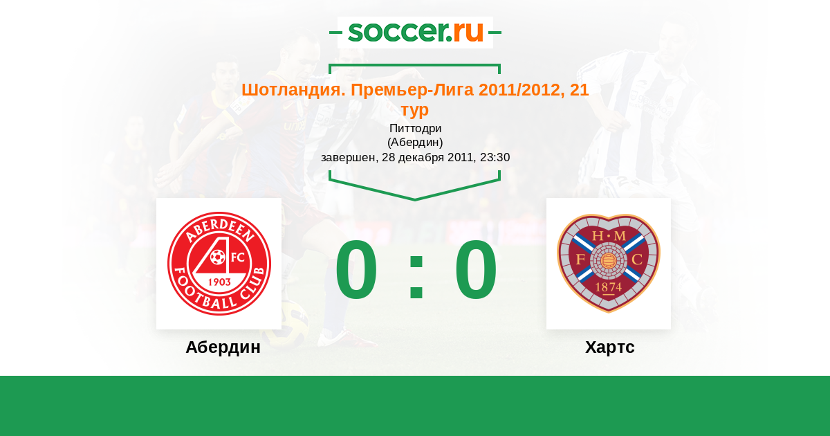 Шотландия. Премьер-Лига 31.03.2012 Хартс Логотип футбольный клуб Хартс (Эдинбург) 3:0 Логотип футбольный клуб Абердин Абердин