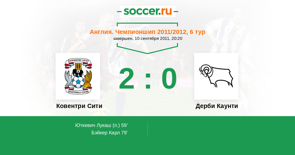 Протокол матча Ковентри Сити против Дерби Каунти