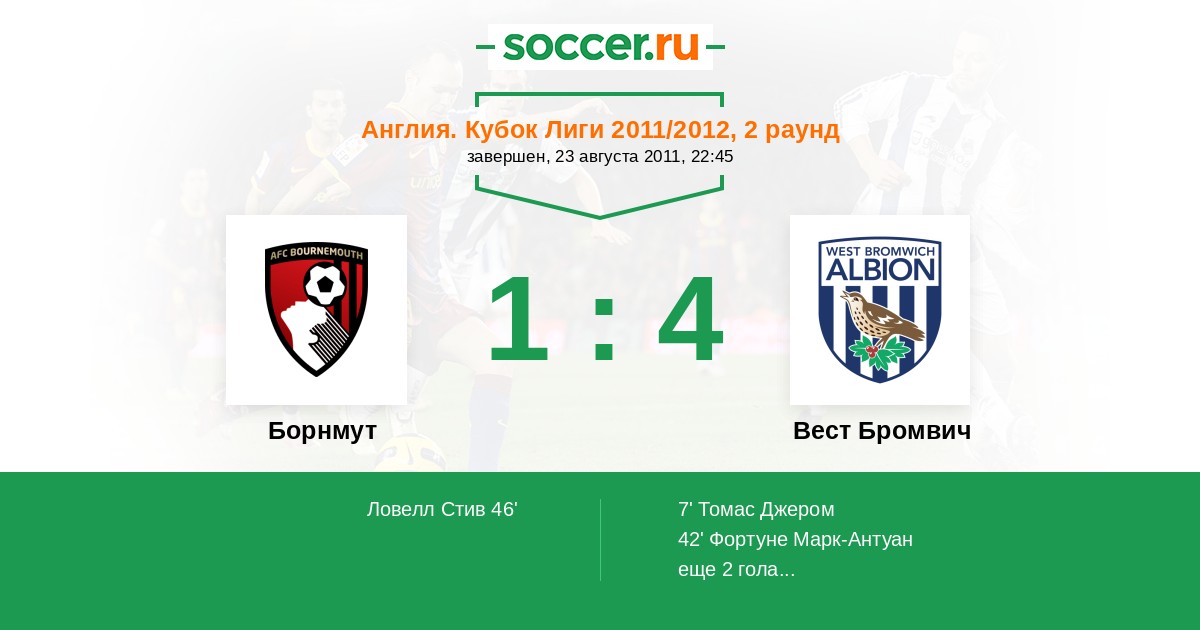 Протокол матча Борнмут против Вест Бромвич