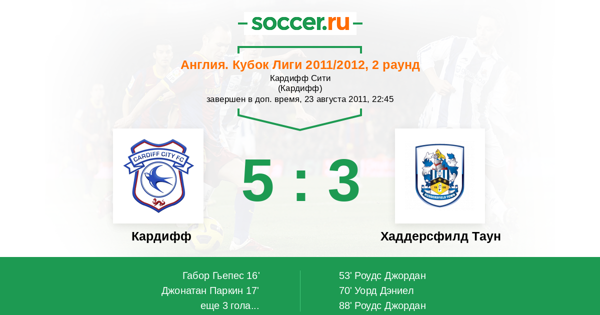 Протокол матча Кардифф против Хаддерсфилд Таун