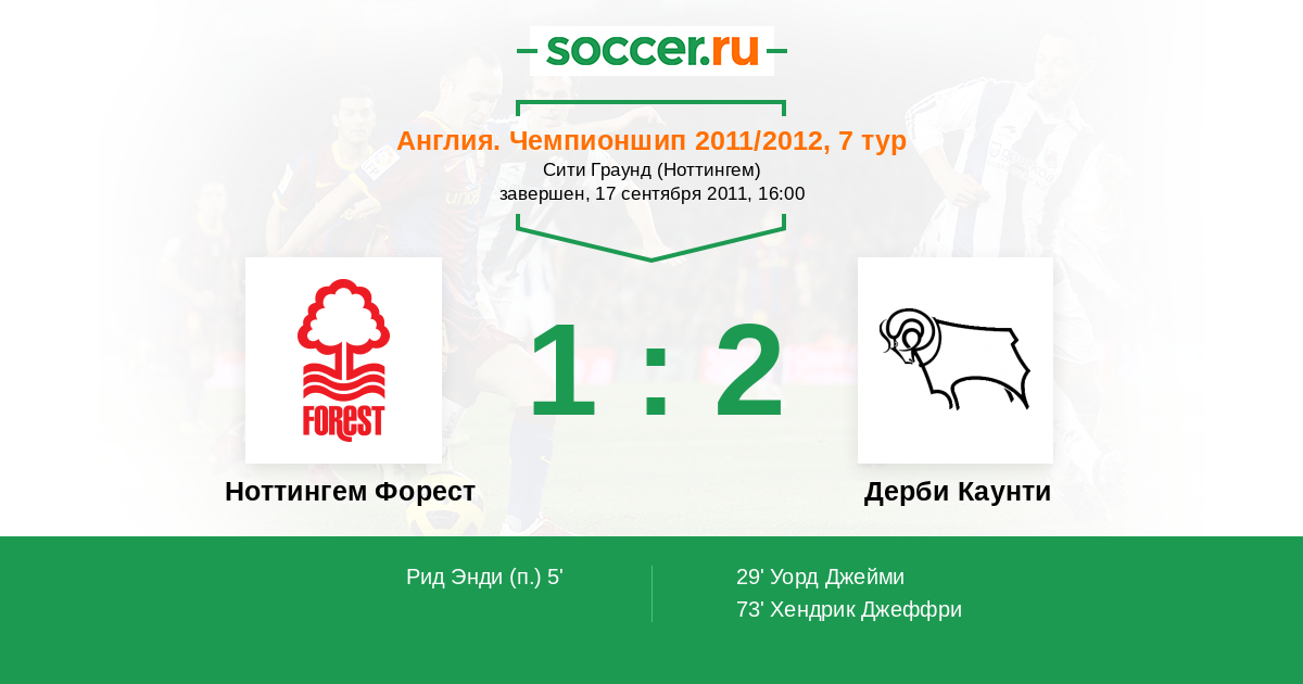 Протокол матча Ноттингем Форест против Дерби Каунти