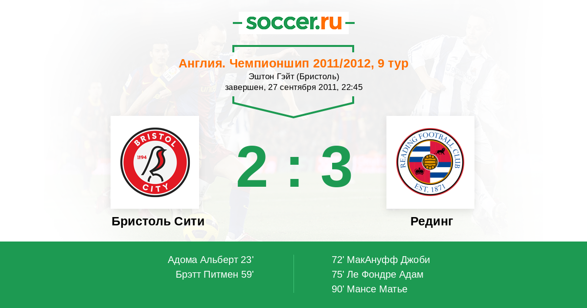 23' (1:0) Адома Альберт (27) (Брэтт Питмен (34))