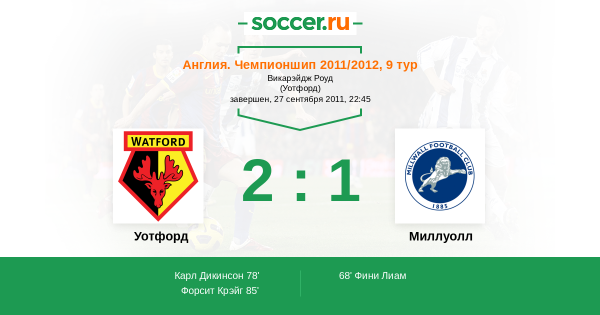 Протокол матча Уотфорд против Миллуолл