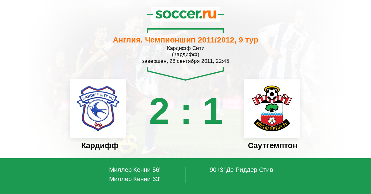 Протокол матча Кардифф против Саутгемптон